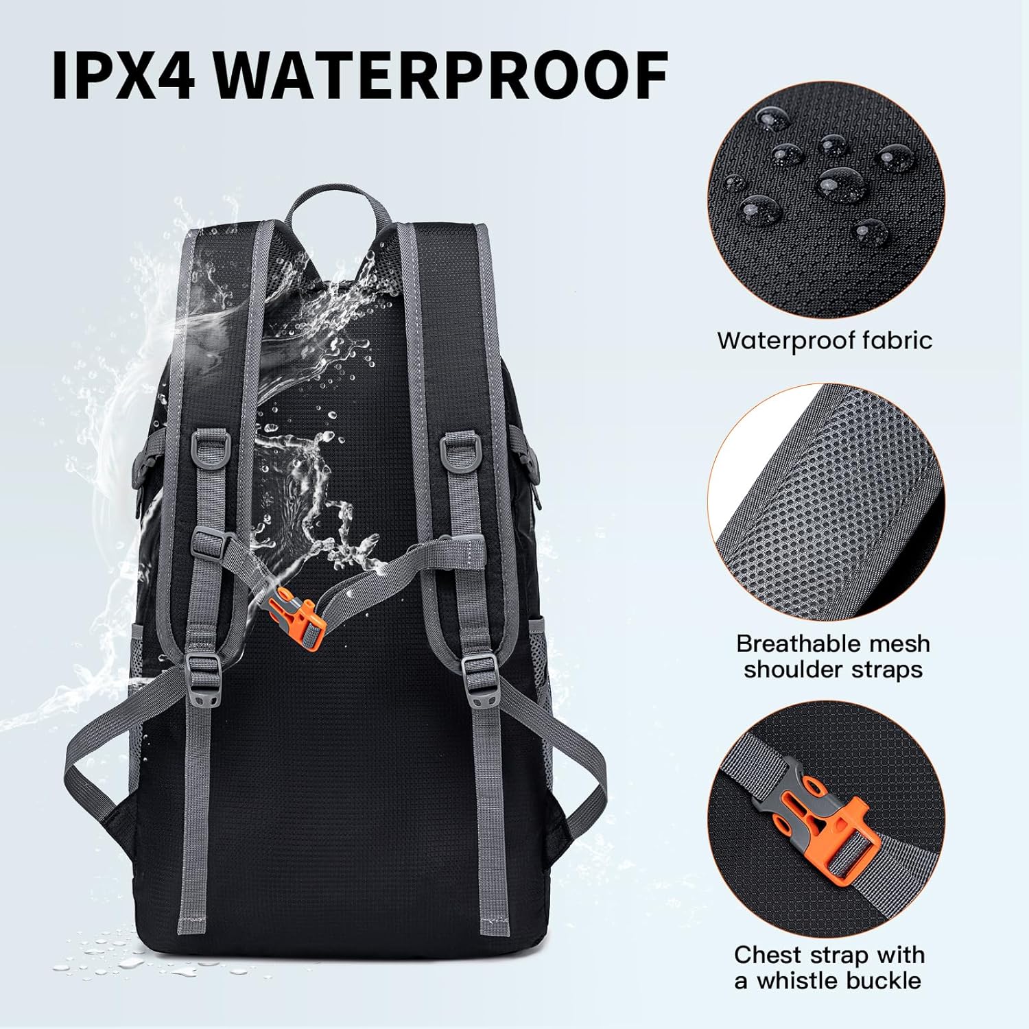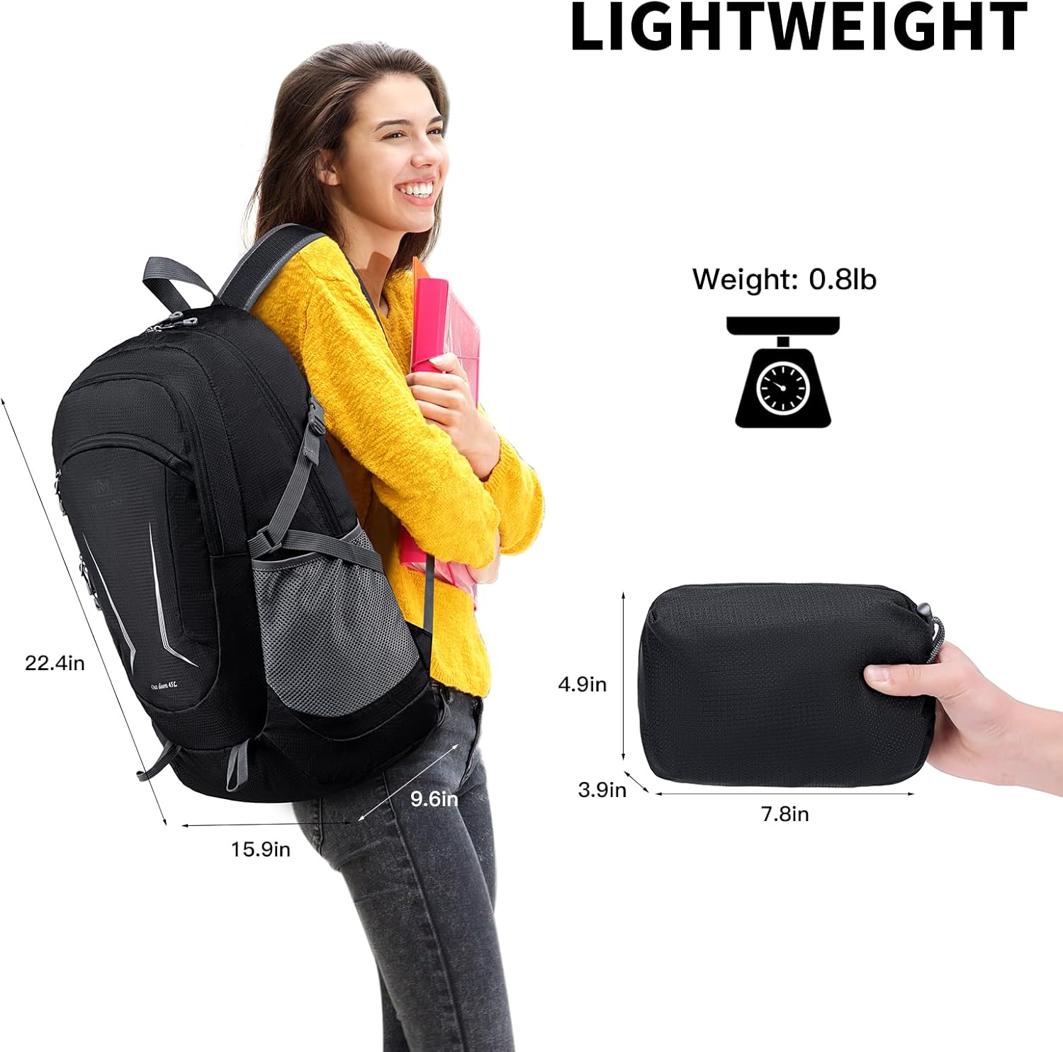 MIYCOO Backpack – Ultra Lightweight Packable Backpack for Travel Camping, 45L Hiking Backpack Waterproof Foldable Daypack for Men Women Black