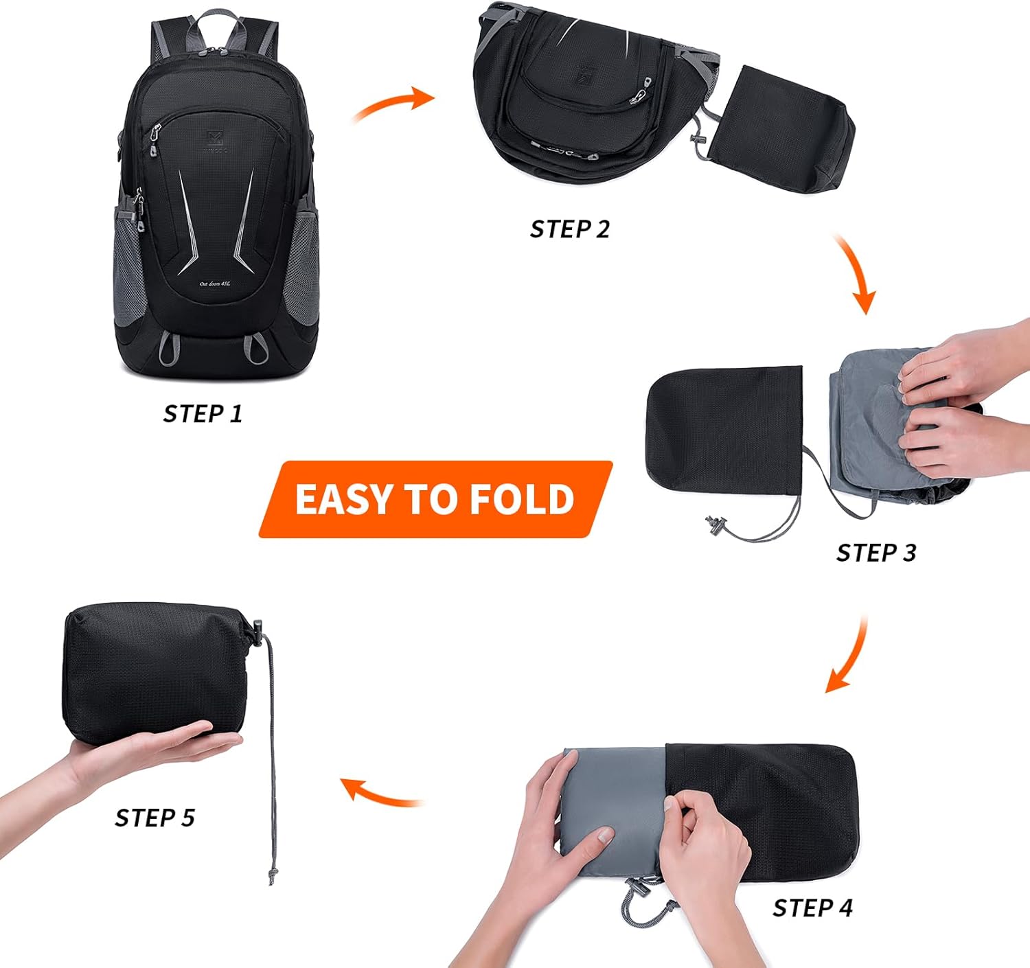 Designed for both men and women, this sleek black backpack combines style with functionality. The foldable design makes it easy to pack and store when not in use, perfect for travelers looking to save space in their luggage.
