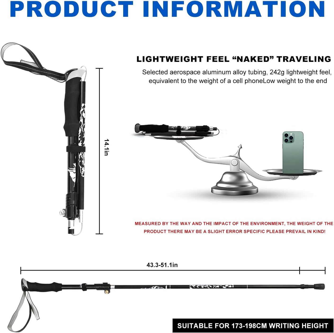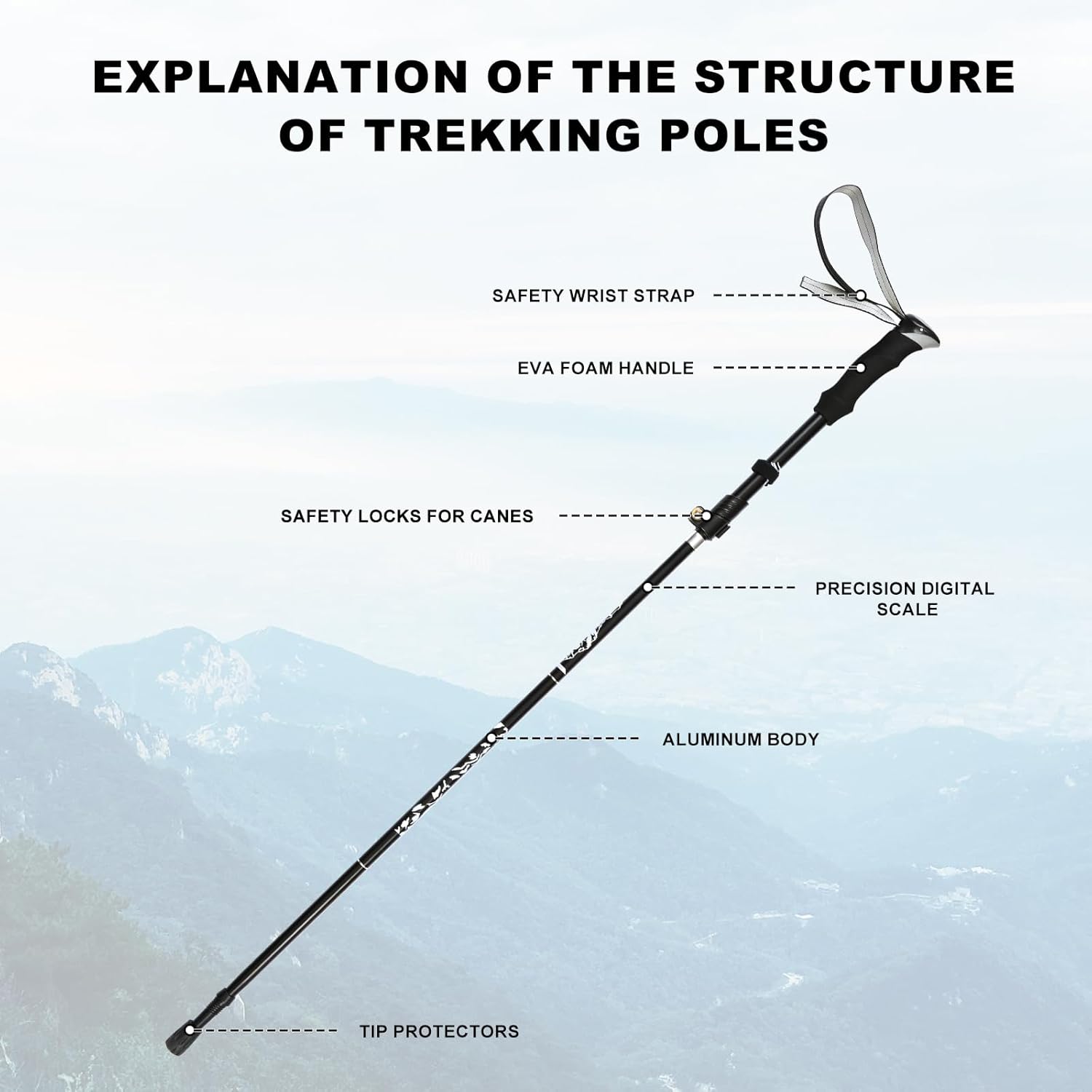 With adjustable height settings and ergonomic grips, this hiking pole is customizable to suit your individual needs and preferences. Say goodbye to discomfort and fatigue, and hello to enhanced performance and enjoyment on your next hike.
