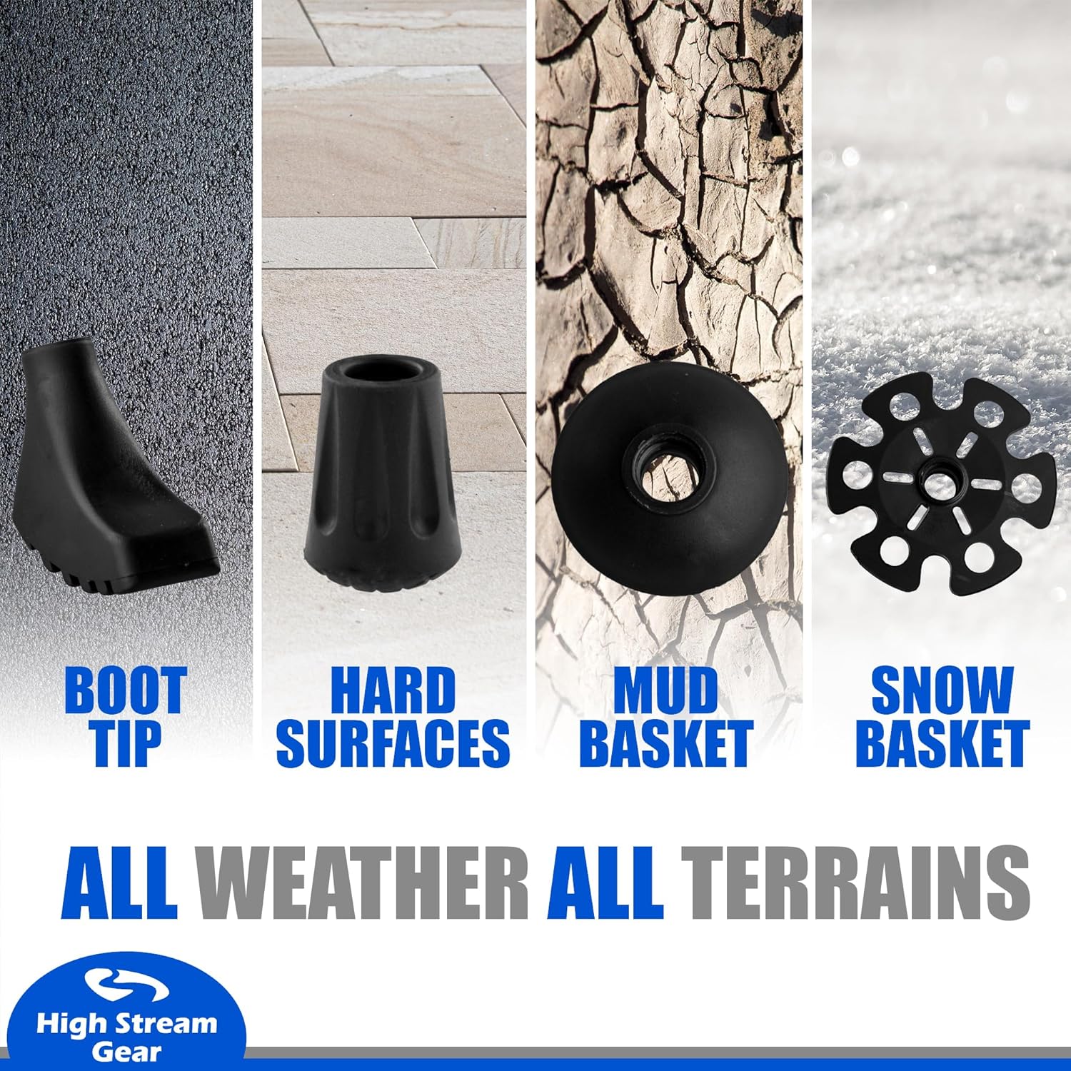With a set of 2 trekking poles included, you’ll have the stability and balance you need for any adventure. Whether you’re climbing steep inclines, navigating rocky terrain, or simply enjoying a leisurely stroll, these hiking poles will help you conquer any challenge with confidence.